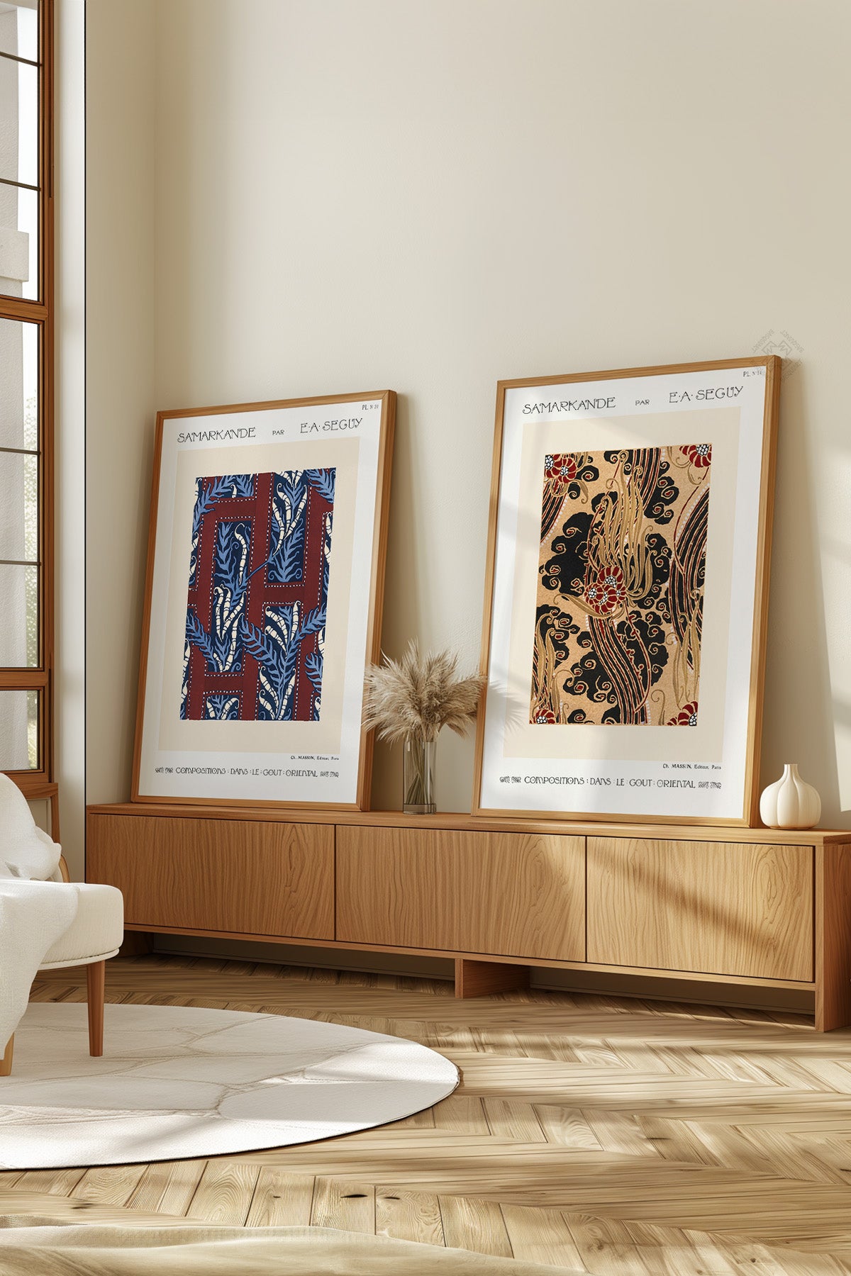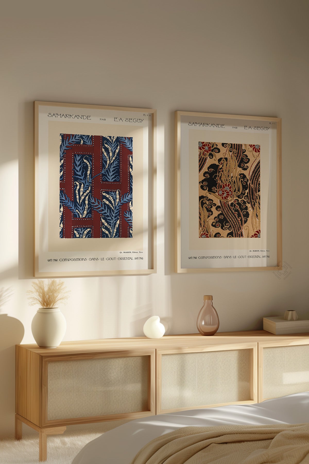 Antik Desen 2'li Ahşap Çerçeveli Poster, Tablo Seti No:39