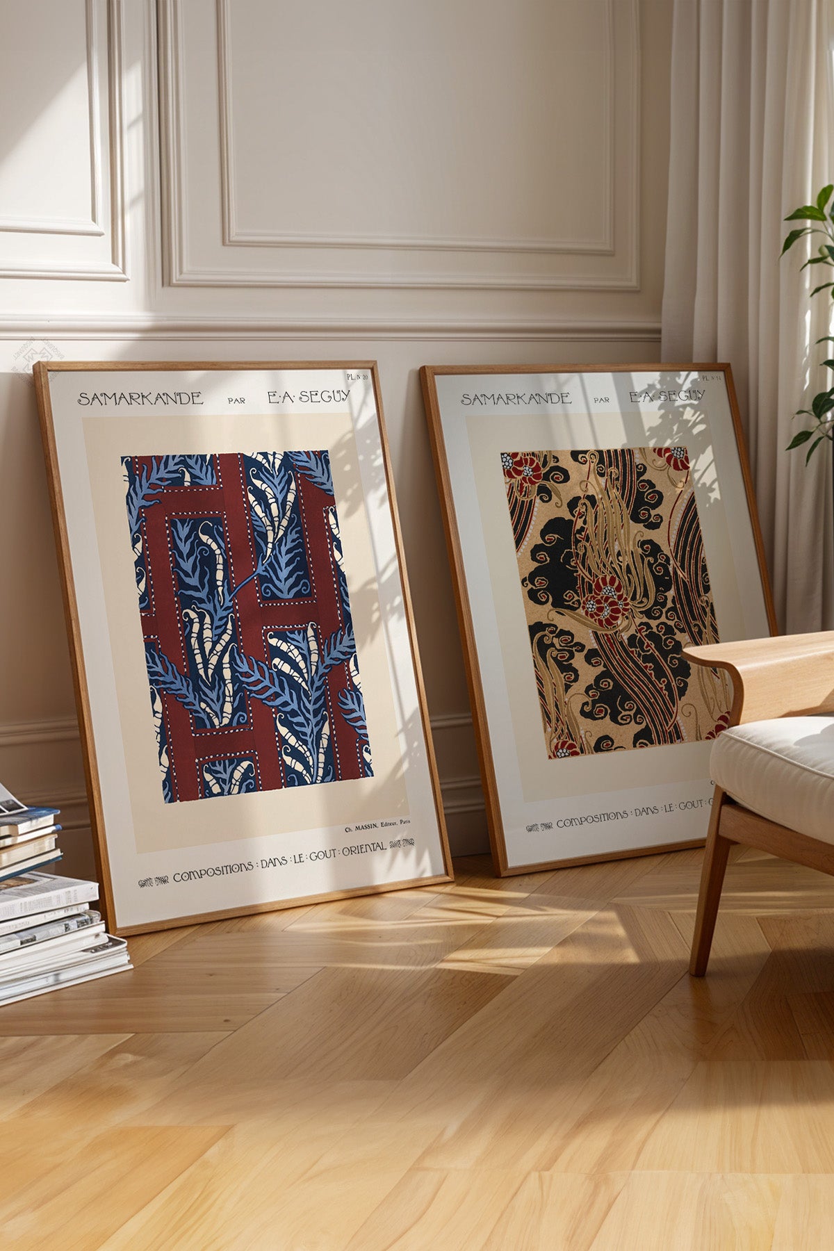 • Antik Desen 2'li Ahşap Çerçeveli Poster, Tablo Seti No:39