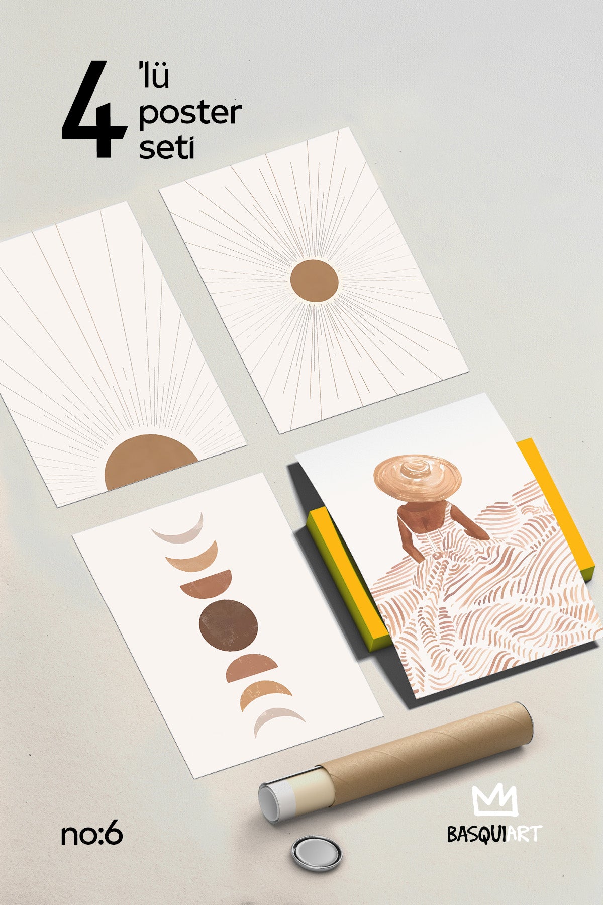 • Bohem Dekoratif 4'lü Poster Seti, Duvar Dekoru No:6