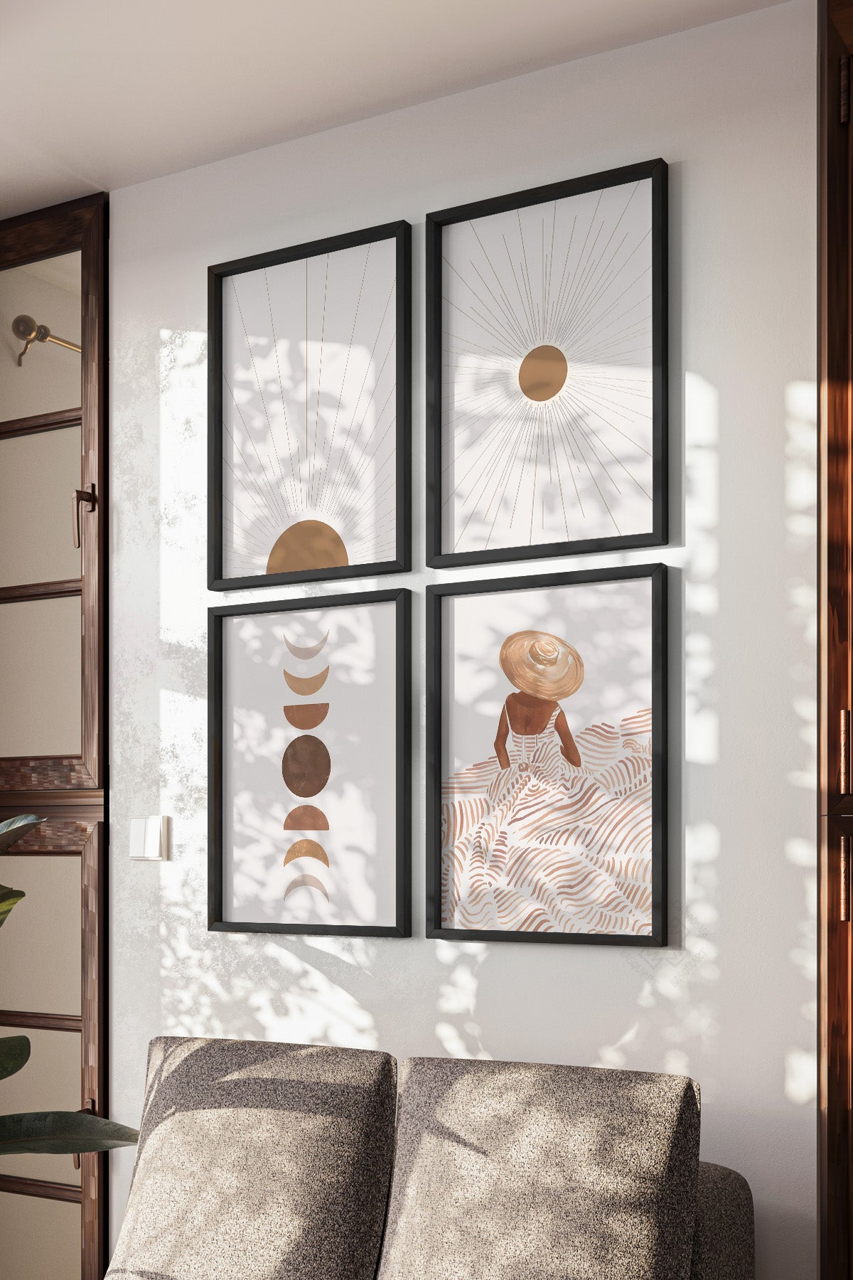 • Bohem Dekoratif 4'lü Siyah Çerçeveli Poster, Tablo Seti No:6