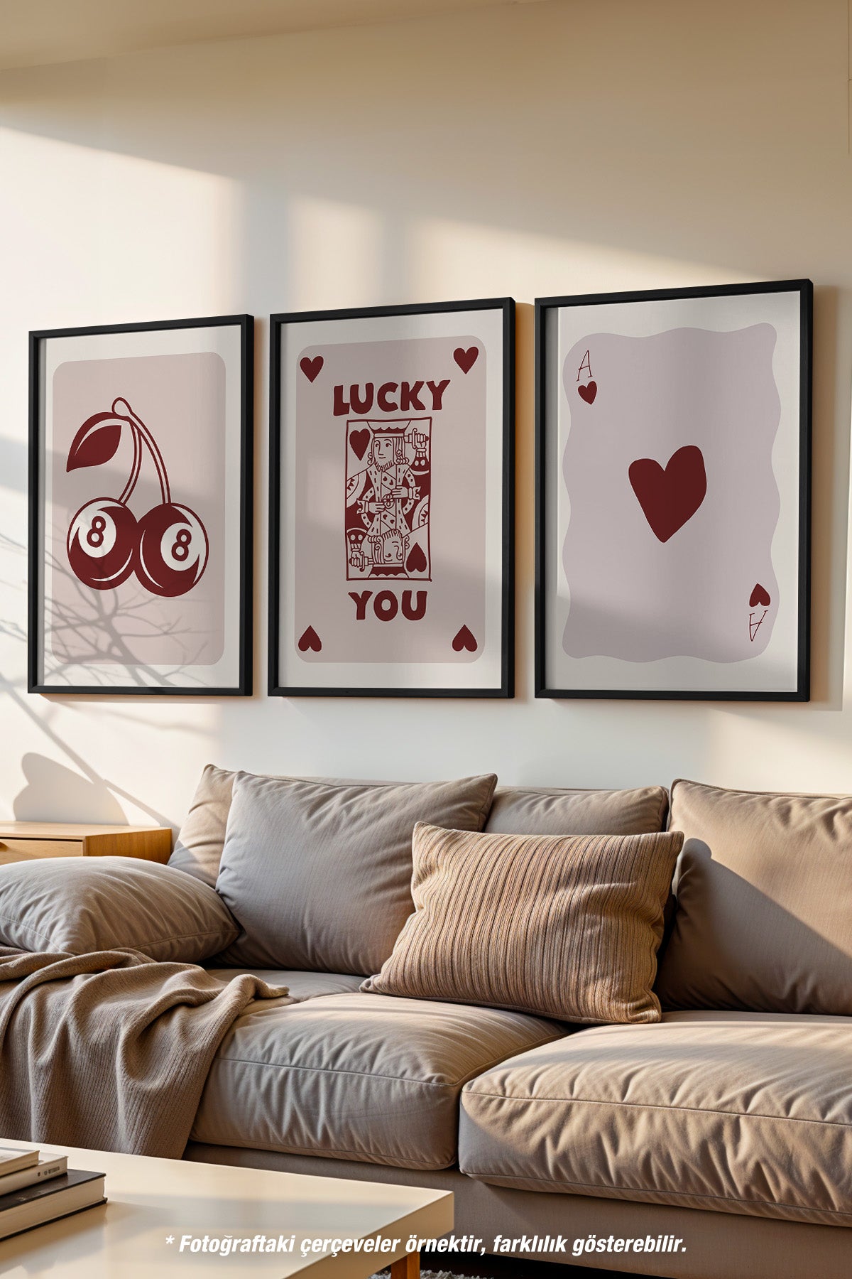 İskambil 3'lü Siyah Çerçeveli Poster, Tablo Seti No:29