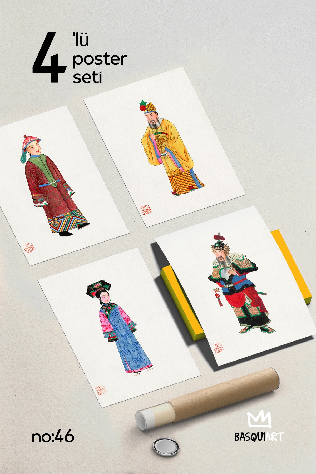 • Japon İllüstrasyon 4'lü Poster Seti, Duvar Dekoru No:46