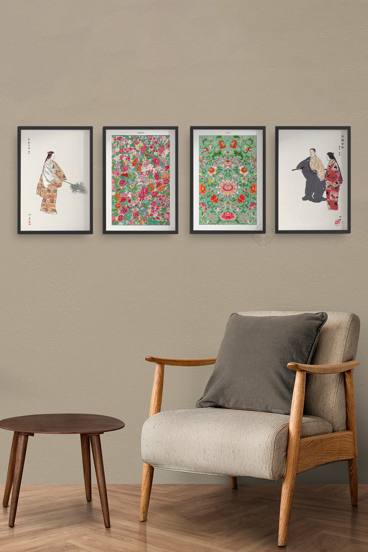 Japon Sanatı 4'lü Siyah Çerçeveli Poster, Tablo Seti No:44