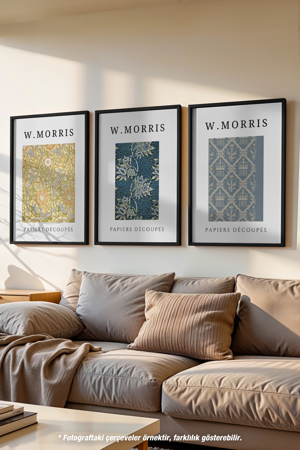 Morris Sanatsal Dekorasyon 3'lü Ahşap Çerçeveli Poster, Tablo Seti No:7