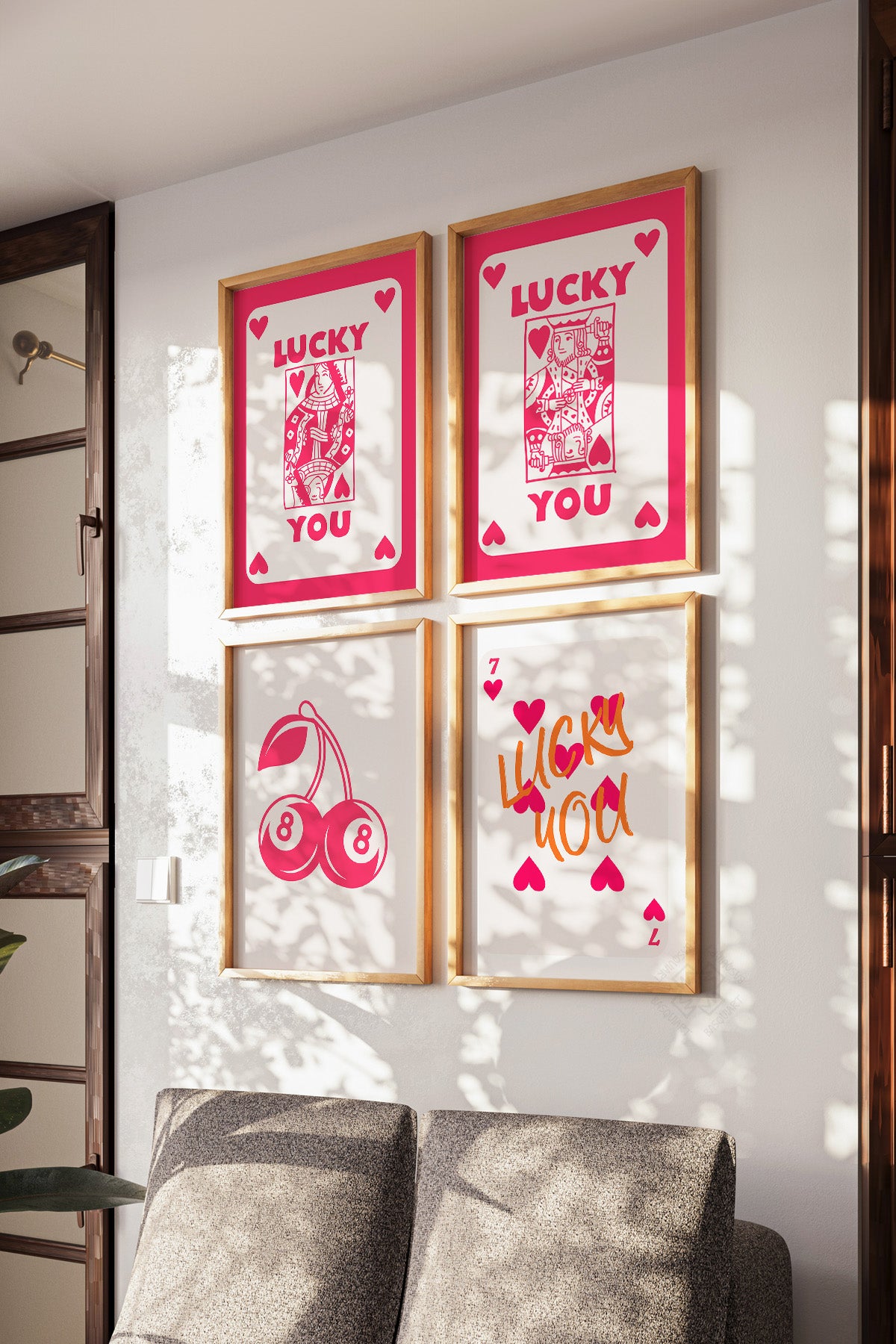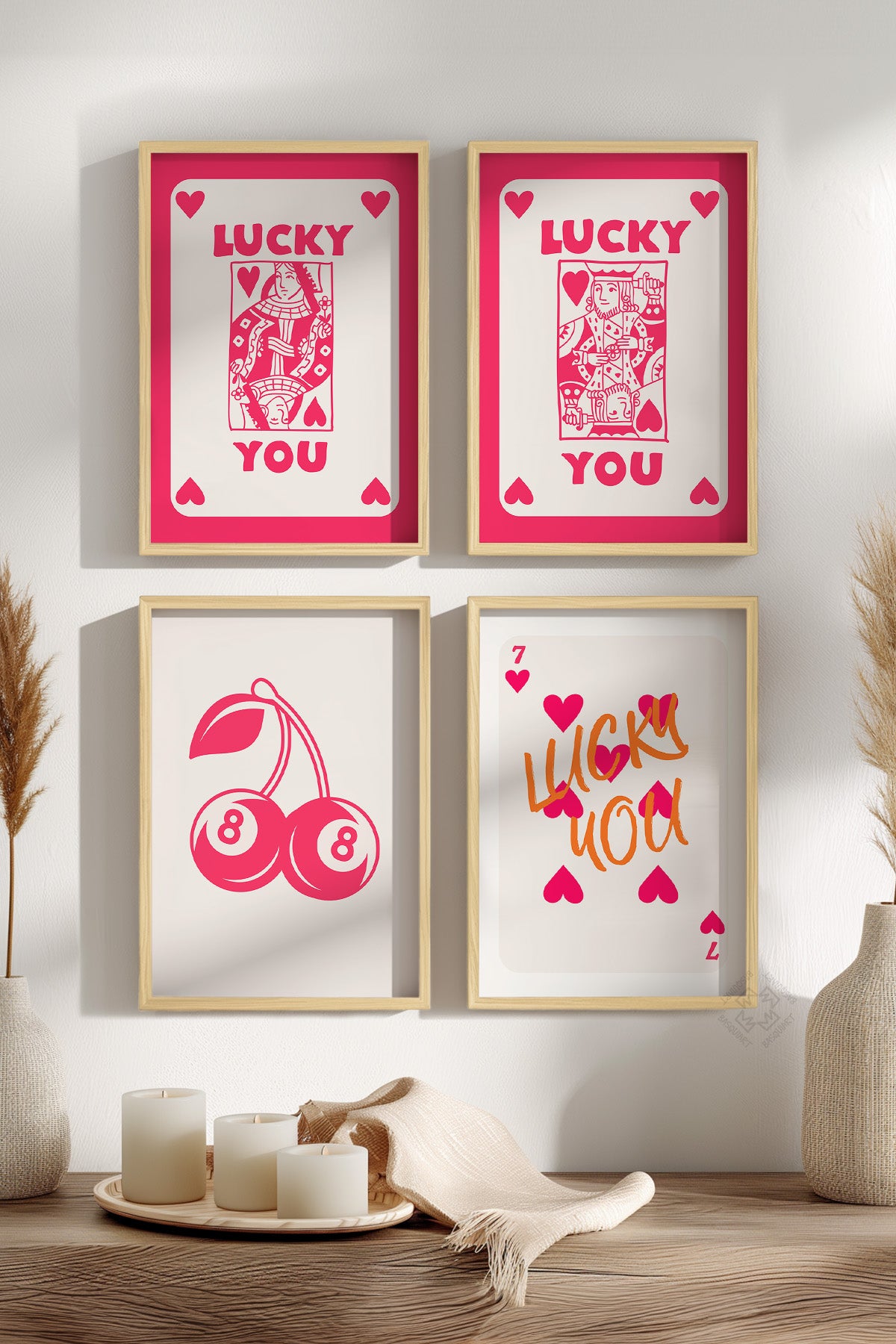 • Şans, Aşk, İskambil 4'lü Ahşap Çerçeveli Poster, Tablo Seti No:60