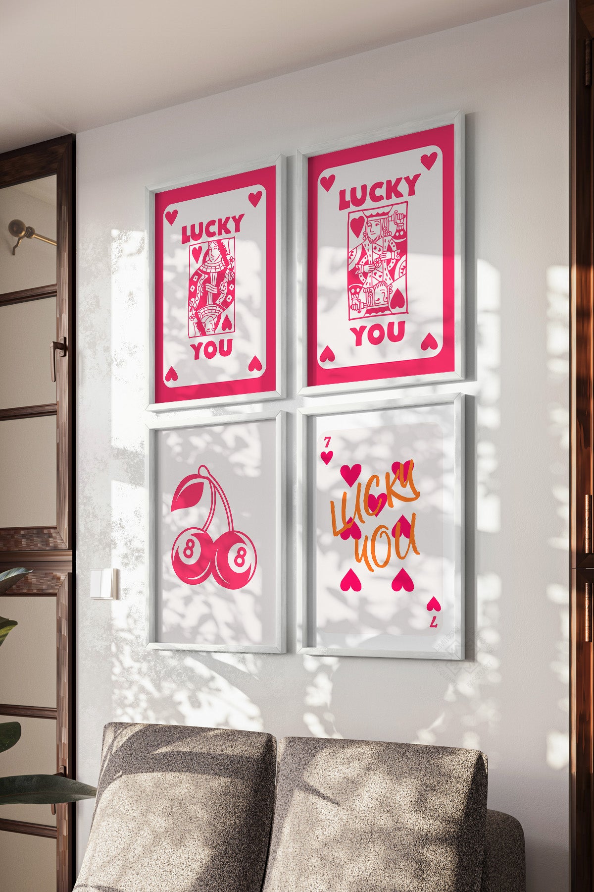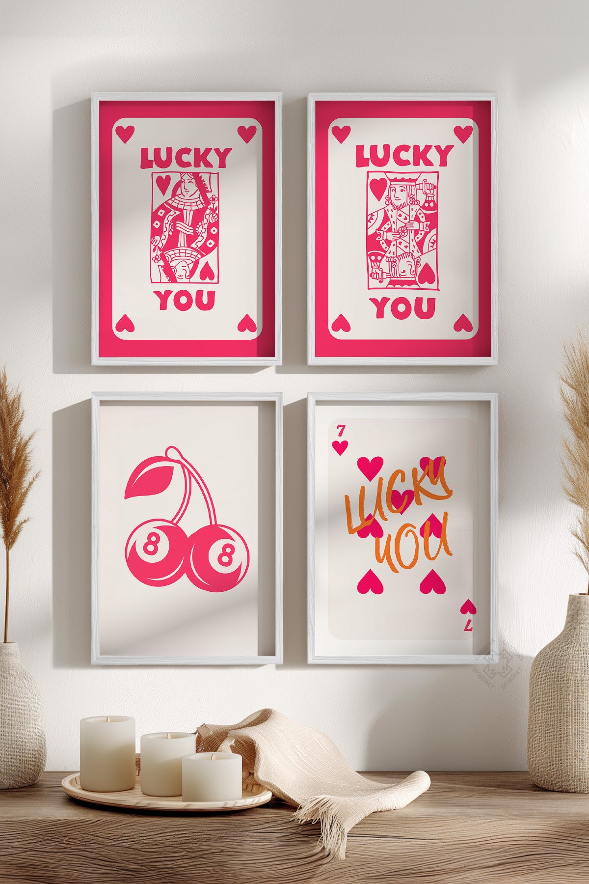 • Şans, Aşk, İskambil 4'lü Beyaz Çerçeveli Poster, Tablo Seti No:60