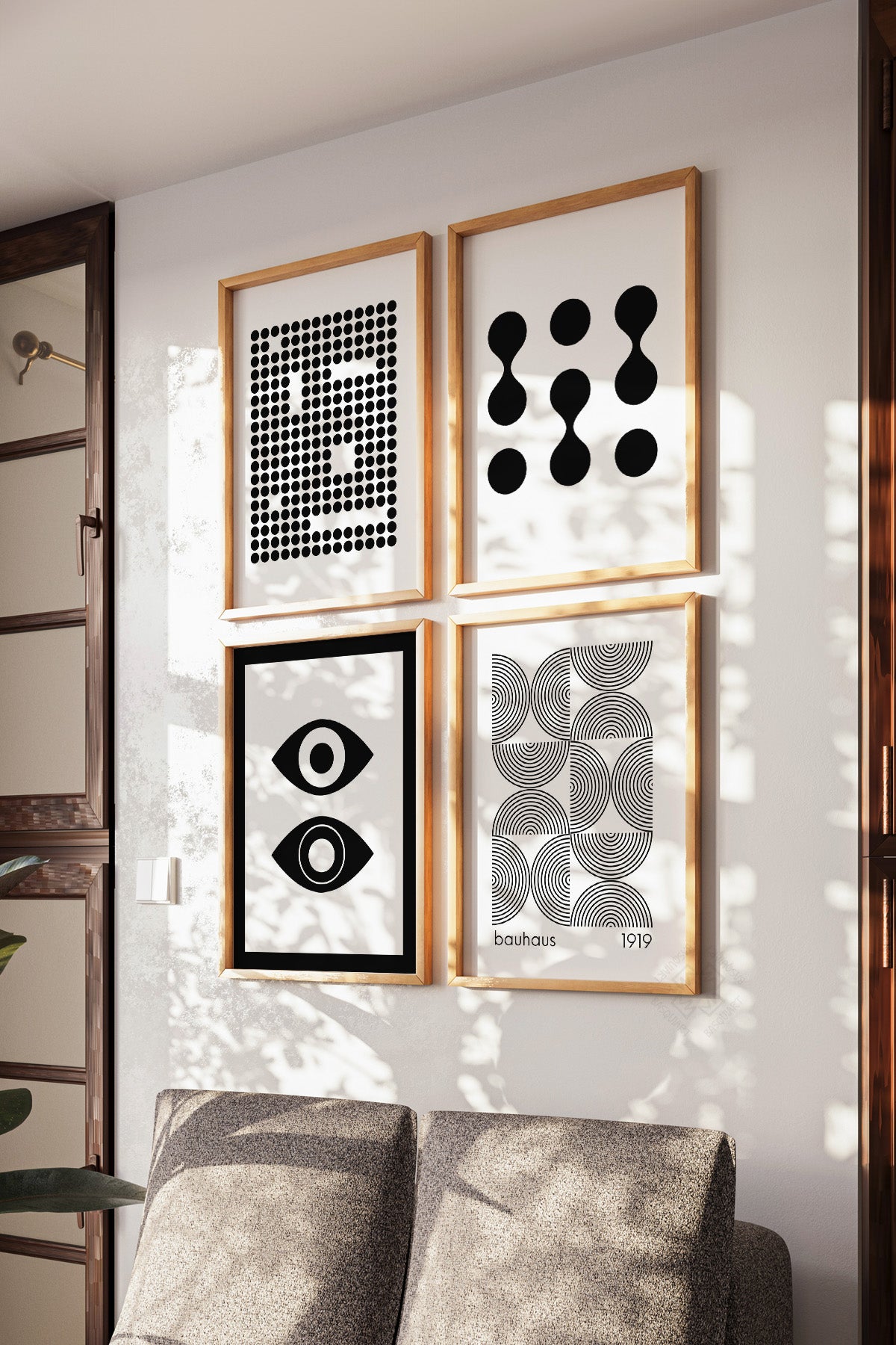 • Siyah Beyaz Bauhaus 4'lü Ahşap Çerçeveli Poster, Tablo Seti No:24