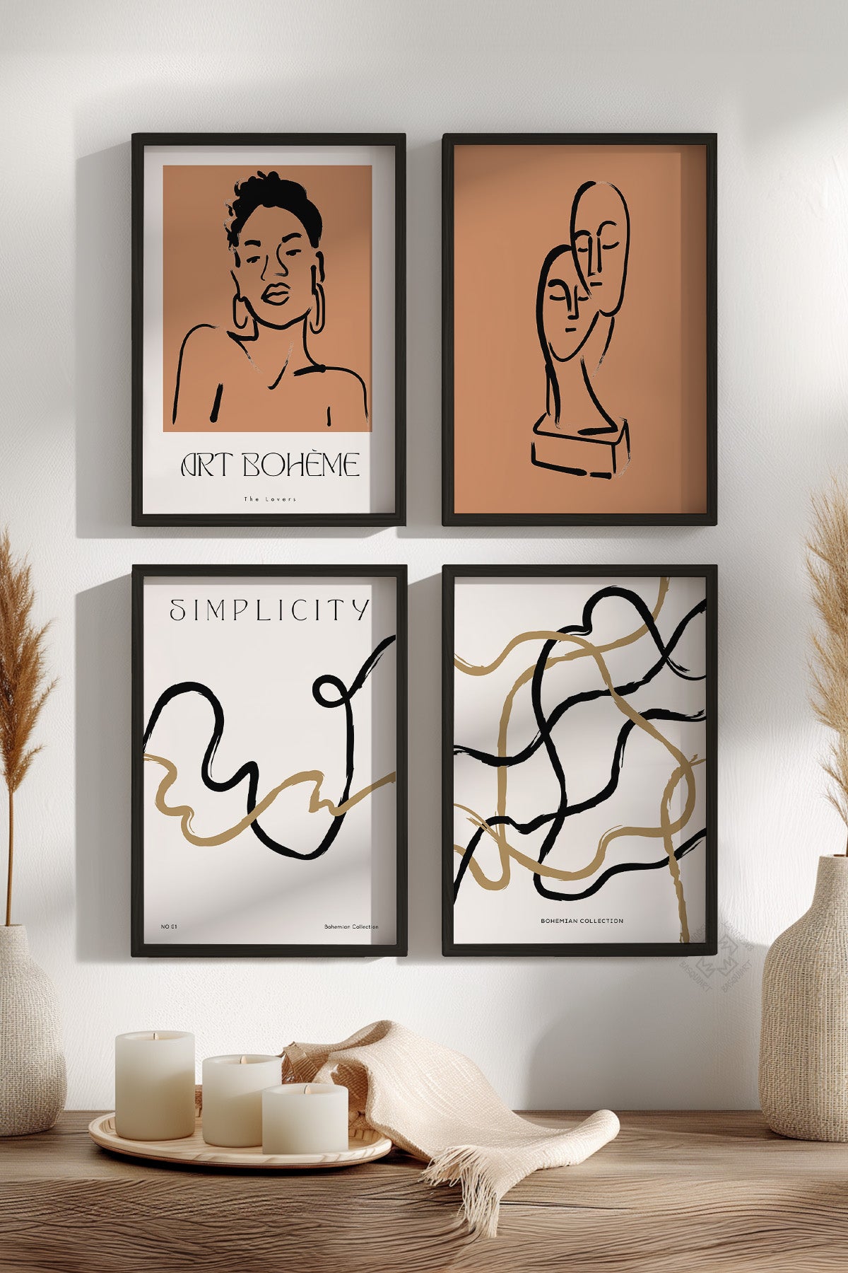 • Toprak Bohem 4'lü Siyah Çerçeveli Poster, Tablo Seti No:12